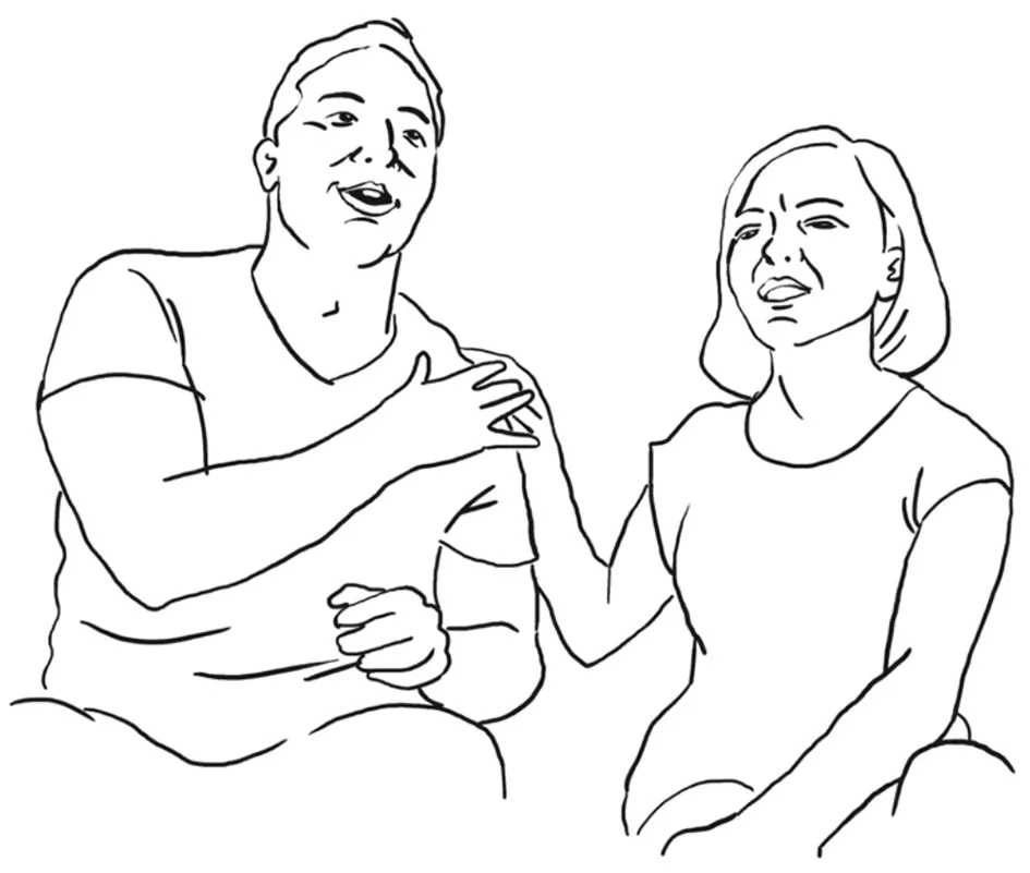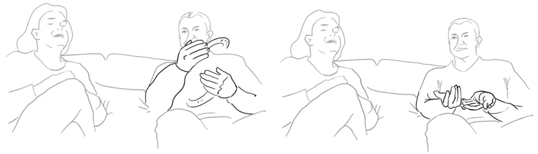 While taking divergent stances in these side sequences, the partners (in our sample, mostly spouses) not only try to quickly come to a shared understanding of what actually happened, but simultaneously strive at reestablishing both a told and performative stance as a harmonious couple. The maybe most striking result is that, put very simply, while telling you that I don't like what you say, I can bodily show both you and them—i.e., the attentively listening third person as well as imagined later recipients—that we are still in a happy relationship. In a nutshell, then, multimodal stance-taking simultaneously allows for my individual voice to be heard and, at the same time, togetherness to be embodied, such as to make the potentially upcoming anger disappear as fast as possible.
