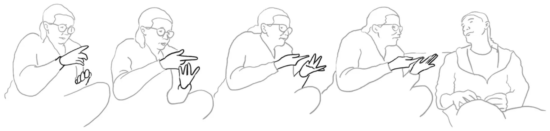 Some highly conventional practices are recognizable through emblematic gestures,1 whereas others (as those under scrutiny here), are more context sensitive, but still recurrent (Satti, 2023a; Ladewig, 2014, 2024).