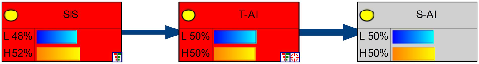 Sensitivity analysis can be used to identify the factors that have the greatest influence on the target node in the Bayesian network model. This is done by investigating the effect of small changes in numerical parameters on the output parameters. Highly sensitive parameters affect the reasoning results more significantly. In this study, redundancy was removed by means of adaptive LASSO network analysis, and only SIS was retained as the parent node, but its sensitivity was still calculated. The average sensitivity of SIS was 0.229 (see Table 4).