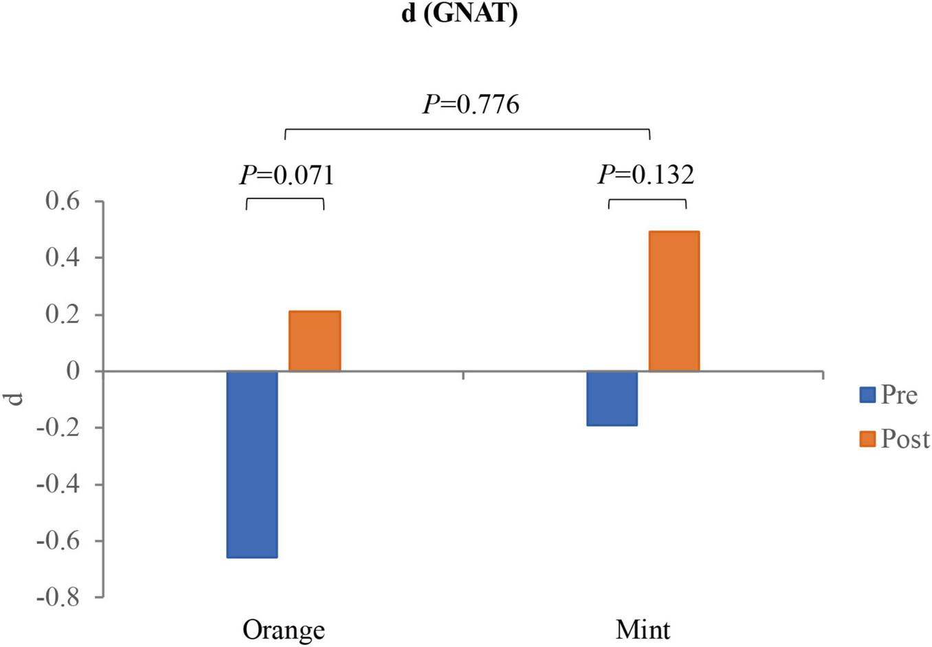 Figure 4. The d-values of participants (N = 17) measured using GNAT before and immediately after smelling (8 min).