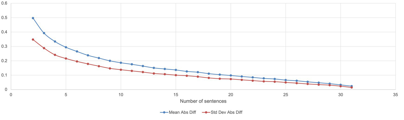 Despite a precise protocol defined to score the sentences, a variability between expert scorers is observed and STAGES experts receive their certification when the goodness of their scoring is above 85% (Merckoll, 2023). The intrinsic nature of the vocabulary used to complete the stems combined with the conjunctions of multiple ideas in a single sentence leads to a potential variability among the experts.