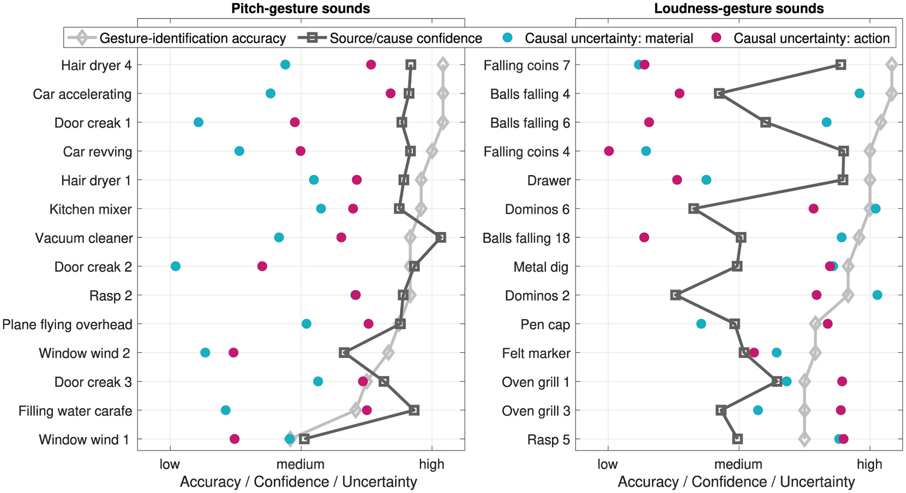 sound gesture, environmental sound, crossmodal correspondence, pitch, loudness, source, cause