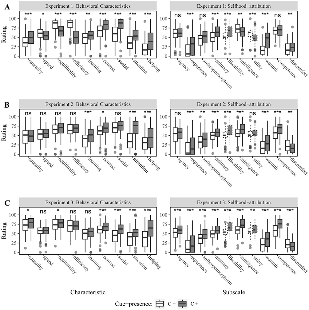 Humans show a consistent tendency to anthropomorphize or attribute aspects of selfhood to nonhuman agents. In a previous study, we found that people (over-)generalize from the presence of a single behavioral selfhood cue (like equifinality or efficiency) to the presence of other (actually absent) cues, suggesting that a small aspect of selfhood suffices to activate the entire selfhood concept with all its other implications (Pars-Pro-Toto). As our previous study was exclusively manipulating non-social aspects of selfhood, we tested whether these findings can also be demonstrated for social aspects. Specifically, we manipulated the presence or absence of cues indicating social sensitivity, attention sharing, or helping behavior in a non-humanoid robot, and tested which cues would elicit attributions of various aspects of selfhood. The results replicated our previous finding that the presence of a single cue is sufficient to (over-)generalize to other, non-manipulated cues, extended our previous observations to social conditions and provided further support for our Pars-Pro-Toto account. Interestingly, however, the over-generalization of self-related cues was stronger within the social domain, while the presence of other agents reduced the attribution of agency.