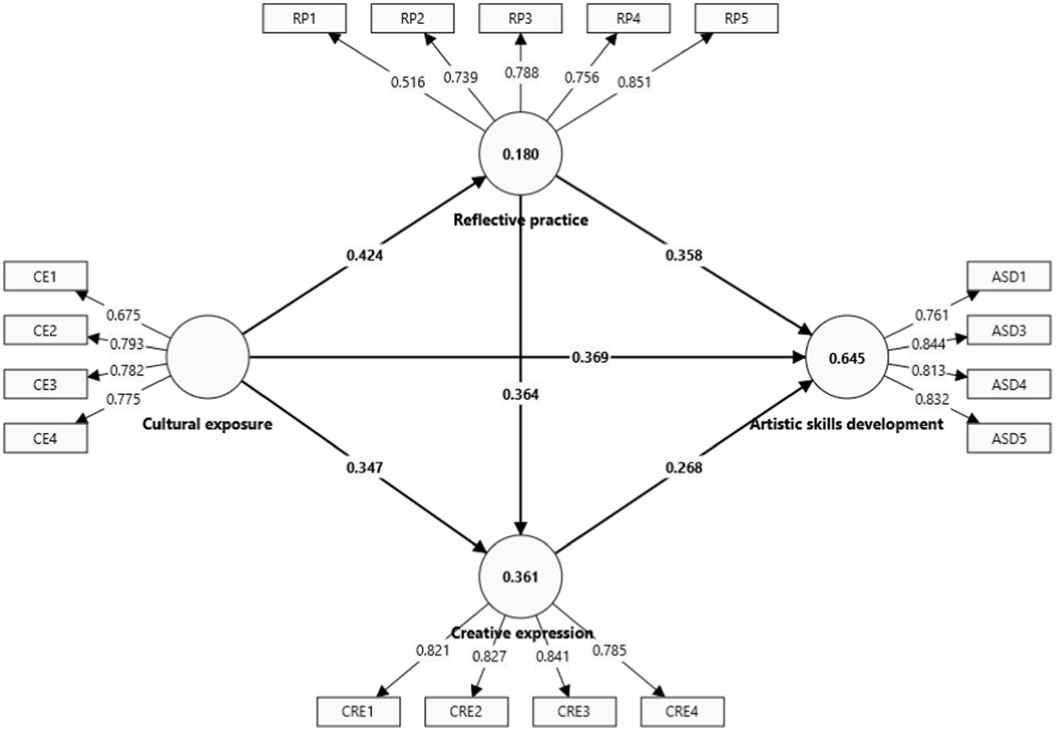 2. To investigate the indirect effects of cultural exposure on artistic skills development through reflective practice and creative expression.