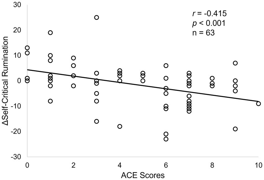 Our recent research indicates that MBIs might be particularly beneficial for patients with high ACE levels in terms of reducing “Self-Critical Rumination” (SCR) (Joss et al., 2025). SCR refers to maladaptive repetitive thinking of past failures and inadequacies without consideration for improvement or problem-solving (Kolubinski et al., 2021). Developmentally, the psychological trait of SCR often arises among people with high levels of ACE (Kannan and Levitt, 2013; Lassri et al., 2018; Shahar et al., 2015), due to internalized criticism from others, proneness to shame and guilt (Shahar et al., 2015) or coping with self-blame (Tanzer et al., 2021). Because the psychological experience of chronic pain is often accompanied by rumination (Edwards et al., 2011) and shame (Coady et al., 2024), trait SCR is likely a risk factor for developing symptoms such as pain catastrophizing (Quartana et al., 2009), depression (Surah et al., 2014), anxiety (Kopala-Sibley et al., 2015) and pain interference (Amtmann et al., 2010) in response to pain experiences. Therefore, we hypothesize that SCR is a mediator between ACE and pain-related psychological symptoms and can be one of the first psychological elements to respond to MBIs.