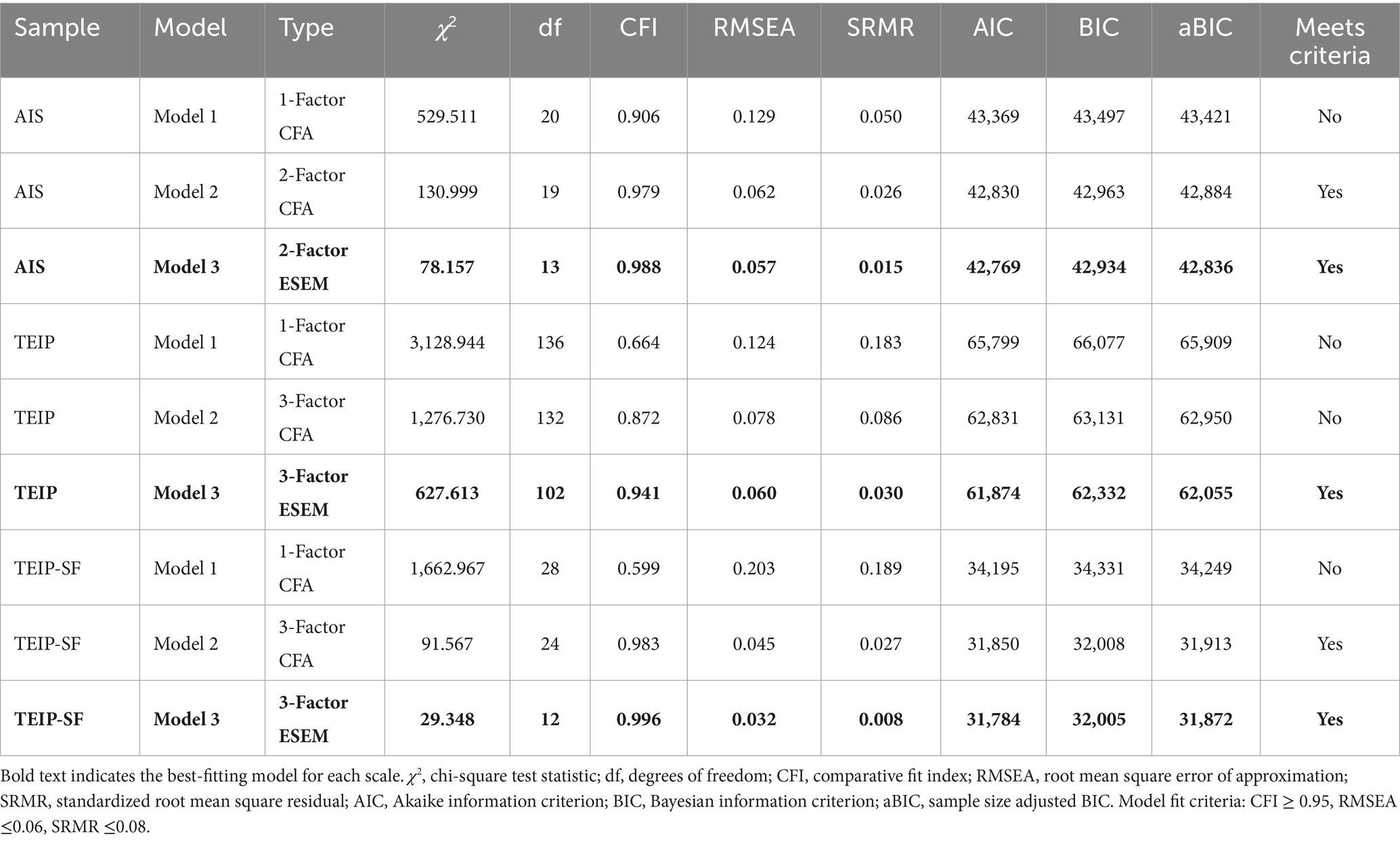 4.1 Factor structure and measurement quality of the AIS, TEIP, and TEIP-SF