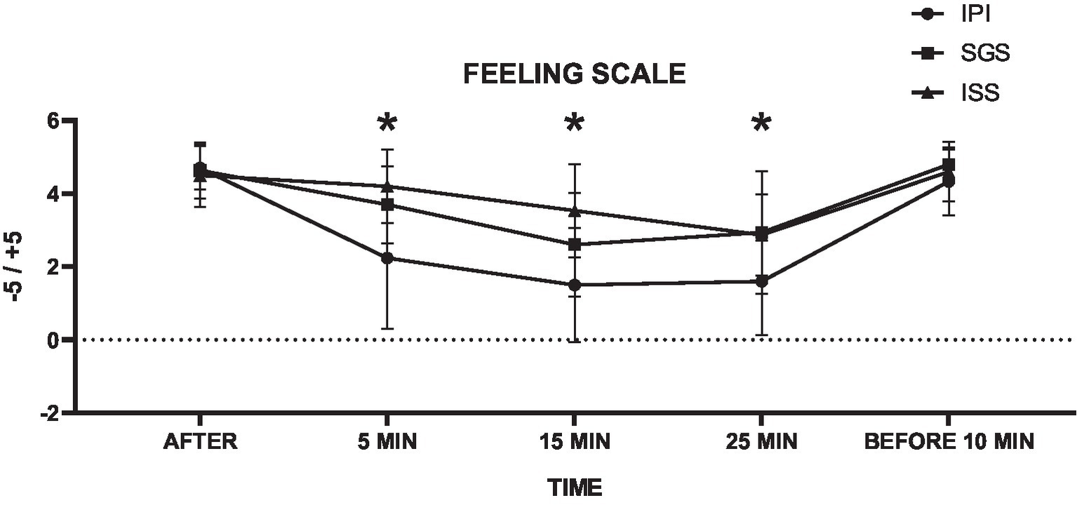 The results showed that HR and VL were similar (p > 0.05) between the protocols IPI, SGS and ISS, while FS, PACES, and INT were significantly higher in SGS and ISS than IPI protocols (p < 0.05). BPNFS also presented better results for the SGS and ISS protocols (p < 0.05).