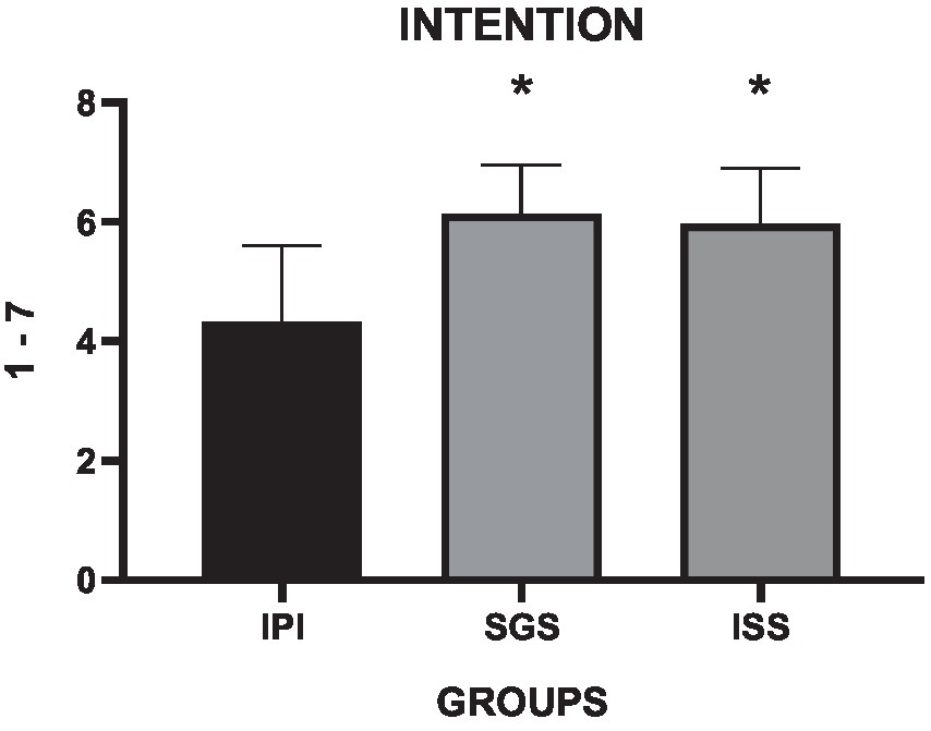 Participants’ intention to engage in future exercise during the following week was assessed using a 2-item scale, adapted from previous studies (Jung et al., 2014; Kwan and Bryan, 2010) and translated into Portuguese (Gomes and Capelão, 2013). The scale included the question: “I intend to perform this exercise I did today at least three times next week.” Responses were recorded on a 7-point Likert scale, with anchors ranging from 1–“very unlikely” to 7–“very likely.” The scale was administered at the conclusion of each protocol. The hedonic theory (Ekkekakis, 2003; Kahneman, 1999) suggests that more pleasurable behaviors are more likely to be repeated. The use of the scale allows for assessing how positive or negative experiences during the exercise session influence the intention to continue.