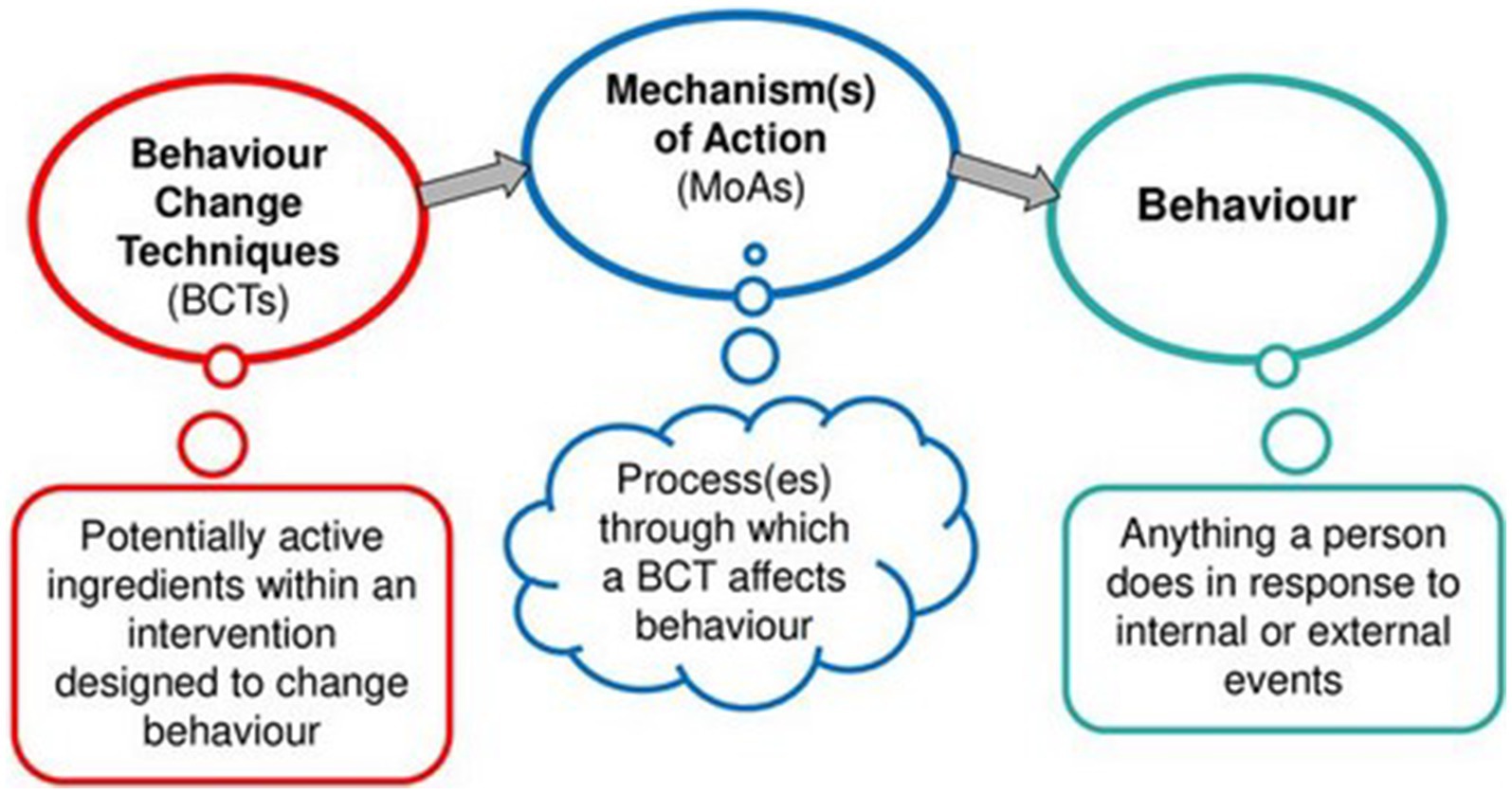 Figure 1. BCTs change behavior via mechanisms of action (adapted from Michie et al., 2016, p. 12).