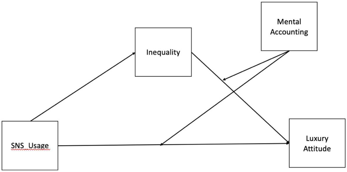 To address this gap, this study introduces mental accounting as a moderating variable in the indirect relationship between SNS use and attitudes toward luxury consumption, mediated by subjective inequality. Mental accounting, one of the concepts in behavioral economics, can play a pivotal role in understanding how people plan for and justify expenditures, particularly in the context of high-cost, non-essential items like luxury goods. Moreover, this study tries to extend the existing knowledge by integrating behavioral economic theory—particularly the notion of mental accounting—into a primarily social-psychological discourse on SNSs and luxury consumption.