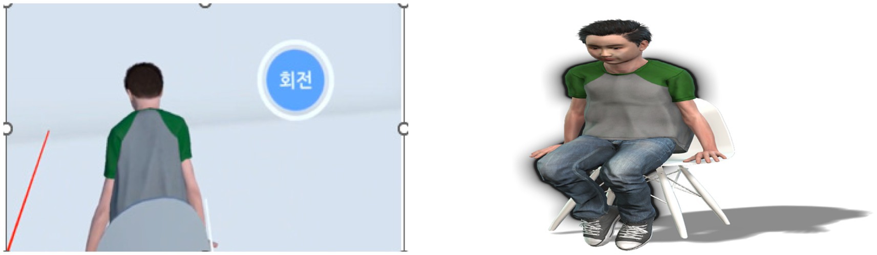 The third theme, “limited nonverbal expression of the virtual representation,” referred to the limited range of nonverbal behavior of the virtual representation, which was restricted to actions such as avoiding eye contact or lowering his head. This limitation hindered participants’ immersion. As an example, Participant 4 stated, “The character kept repeating the same actions, such as lowering his head and then looking up, over and over again. These repetitive and simple movements seemed to disturb my immersion, especially at the beginning.”