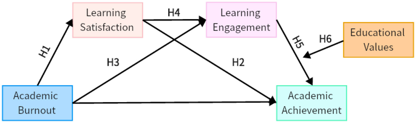 H6: Educational values moderate the chain mediating effect of learning satisfaction and learning engagement on academic achievement.