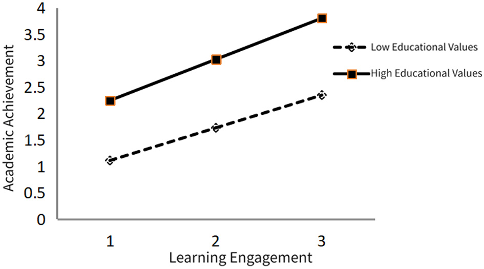 H5: Educational values moderate the impact of learning engagement on academic achievement.