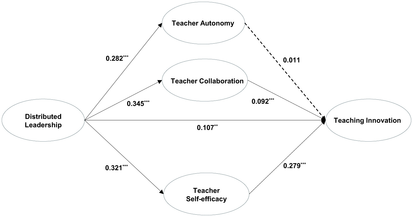 Gong J (2025) The effects of distributed leadership on teaching innovation in Shanghai, China: the mediating roles of teacher autonomy, teacher collaboration, and teacher self-efficacy. Front. Psychol. 16:1562838. doi: 10.3389/fpsyg.2025.1562838