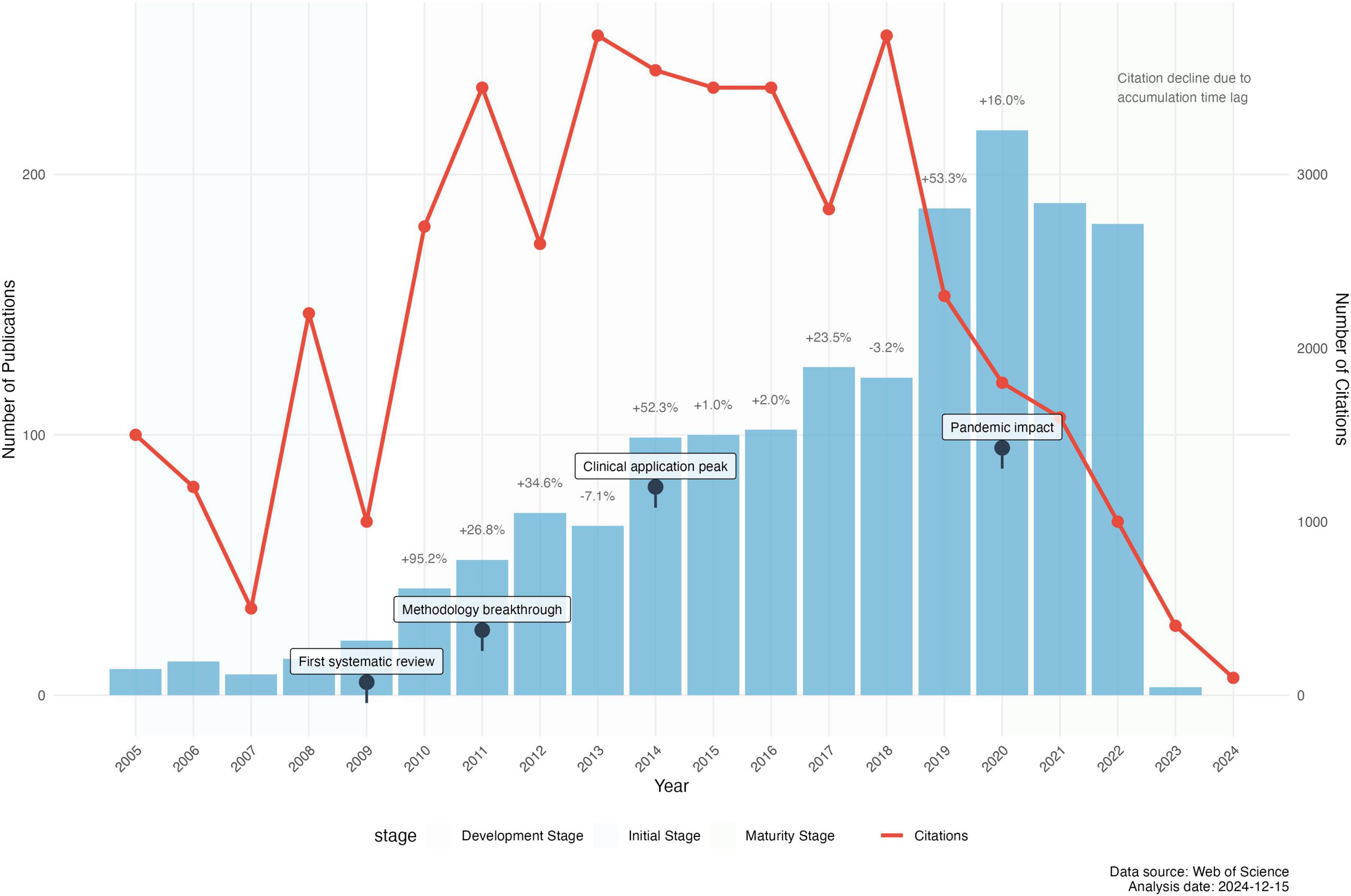 Methods: Using data from the Web of Science Core Collection (2000–2024), we conducted a comprehensive bibliometric analysis using R for primary analyses. We examined publication trends, collaboration networks, research themes, and emerging directions through multiple bibliometric indicators including co-citation analysis, keyword co-occurrence, and research theme evolution.