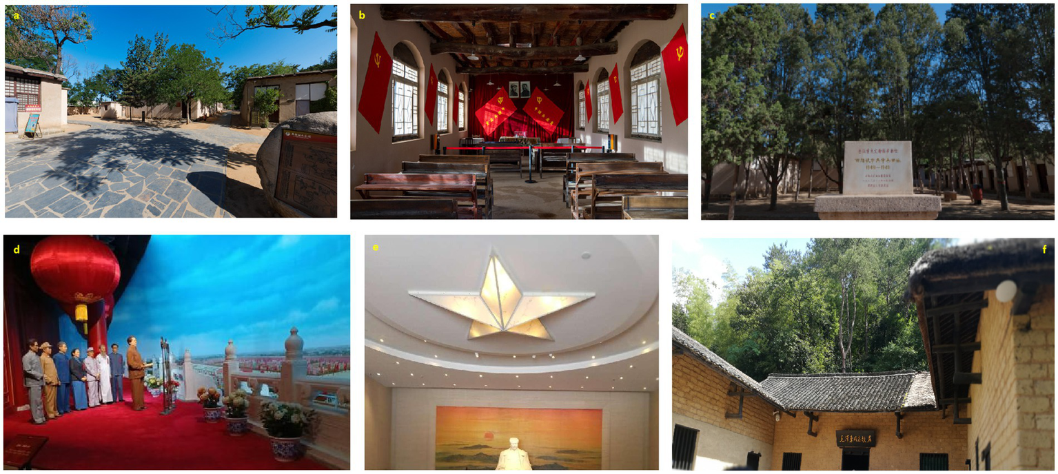 Figure 2. Landscape of the research sites. a-c denote red tourism sites in Xibaipo, and d-f denote red tourism sites in Shaoshan.
