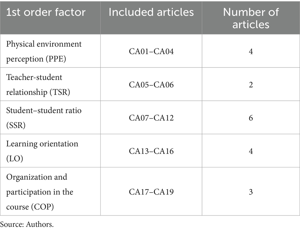 Although the second-order model showed similar fit indices, we opted for the first-order specification due to its parsimony and interpretability, which are critical in applied educational research (Lévy and Varela, 2006; Varela et al., 2006; Brown, 2014). In addition, as noted by prior methodological work (Varela et al., 2006; Gould, 2015; Cavicchia and Vichi, 2022), higher-order models can increase estimation complexity and reduce the clarity of substantive interpretations. In our context, adopting a second-order model would also obscure the direct influence of the physical environment (PPE) on each latent factor. While a higher-order specification could simplify the structure by linking PPE to a global construct, it would do so at the expense of evaluating specific influences on classroom climate, wellbeing, and relational variables, which were central to the objectives of this study.
