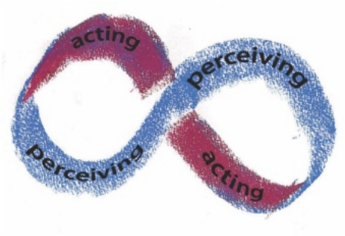Figure 2 presents the relation of perceiving and acting using a Mobius strip image to emphasize that perceiving is always acting, and acting always changes perceiving—what is perceived and how it is perceived. This image pertains to the ongoing activities of an exploratory perceiving organism, but it does not indicate what development of the organism would look like.