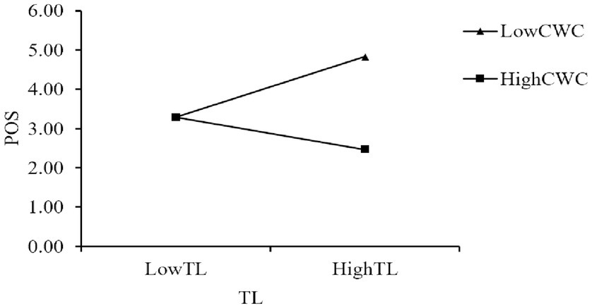 H3b: CWC negatively moderates the relationship between TL and POS.