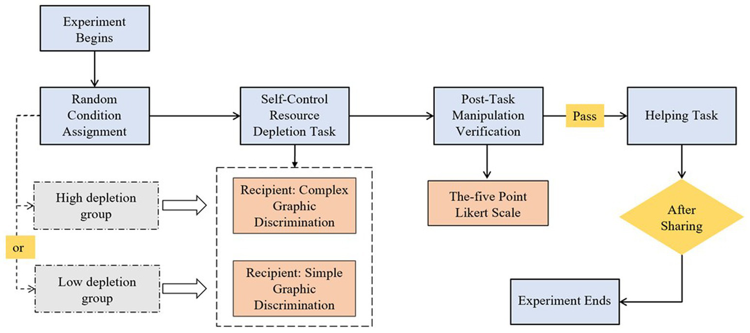 Cognitive resources refer to the limited mental resources required by individuals to complete tasks, including attention, memory, and executive function (Baumeister, 2002; Shah et al., 2012). Self-control resources, as a critical component, are specifically used to inhibit impulses and regulate behavior to conform to social norms, often metaphorically referred to as the “moral muscle” (Baumeister and Vohs, 2018). Researchers, using methods such as the Stop-Signal Task (Meng and Moriguchi, 2021) and the dual-task paradigm (Ugur, 2021), have identified the limited and depletable nature of self-control resources.