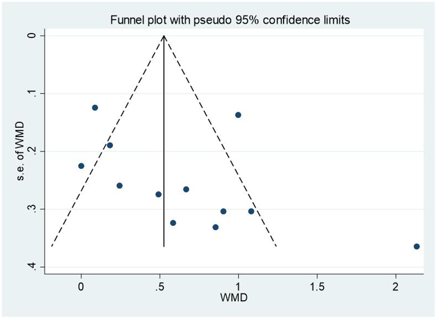 Heterogeneity was determined by the Cochrane Q statistic and the I2 statistic. Cochrane Q statistic was used to test the heterogeneity, and the I2 statistic was used to evaluate its value. The value of the I2 statistic of 25, 50, and 75% indicated that the degree of heterogeneity between studies is low, moderate, and high (Higgins et al., 2003). The fixed-effects model was used when the I2 < 50% and the random-effects model was used when the I2 > 50%. The studies with a greater variance in their effect size estimate contributed less to the summary effect. When high heterogeneity exists, we conducted subgroup analysis based on several variables. We used Egger’s regression asymmetry test to test the publication bias (Egger et al., 1997). We conducted a leave-one-out analysis to observe the stability of the results.