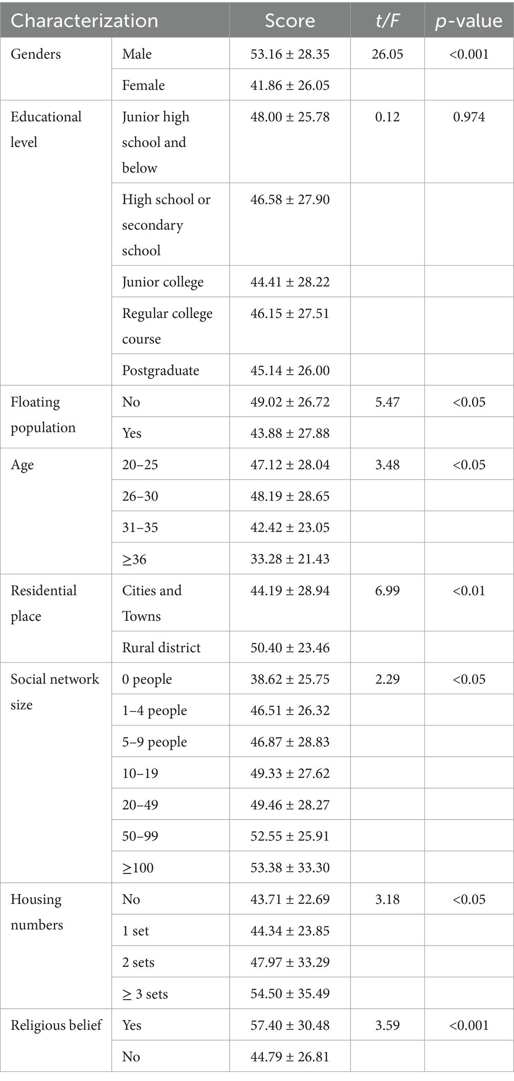 The lower marriage intention among females compared with males may be attributed to the changing social roles and increasing economic independence of females in ethnic minority areas (Cislaghi and Heise, 2020). This trend aligns with broader global patterns where women’s empowerment and education often lead to delayed and reduced marriage intentions. Additionally, cultural expectations and gender norms in these communities might also play a role, which warrants further qualitative exploration. The higher marriage intention among rural residents could be due to stronger traditional values and social pressures to get married within rural communities (Qing, 2023). In contrast, urban residents may face more diverse lifestyle choices, higher living costs, and greater exposure to modern values that diminish the urgency and desire to marry. Floating populations, often migrating for work or education, face unique challenges such as instability, social isolation, and cultural disconnection (Shao et al., 2023). These factors likely contribute to a lower marriage intention among them, as they may prioritize economic stability and personal development over immediate family formation. The influence of social network size and housing numbers suggests that social support and material conditions are crucial determinants of marriage intention (Özşahin, 2024). Smaller social networks may limit access to potential partners and social approval, while limited housing resources could indicate economic constraints that deter marriage.