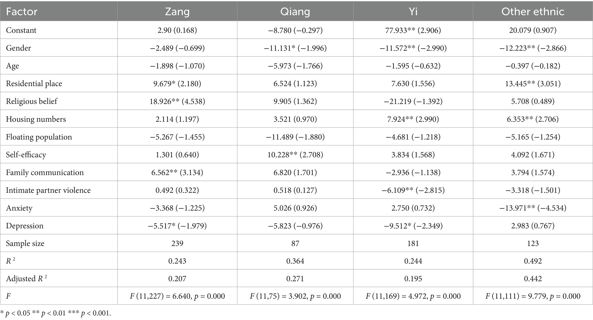 Table 3. Multi-factor linear regression analyses of the factors influencing ethnic minorities’ marriage intention in the Zang-Qiang-Yi Corridor.