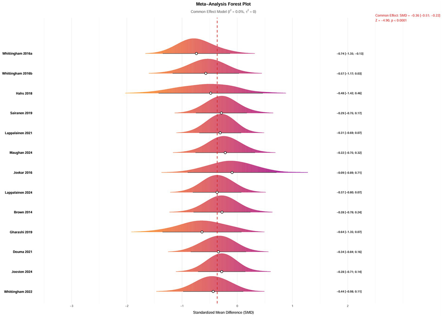 1. Geographic heterogeneity: significant effects were observed in Australia (Standardized Mean Difference [SMD] = −0.49, 95% Confidence Interval [CI] [−0.77, −0.21]) and Finland (SMD = −0.34, 95% CI [−0.62, −0.05]) (p < 0.05). These findings suggest that robust social welfare systems may enhance intervention efficacy by alleviating financial burdens on families.