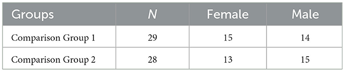 Table 1. Number of participants in Comparison Group 1 (CG1) and Group 2 (CG2).