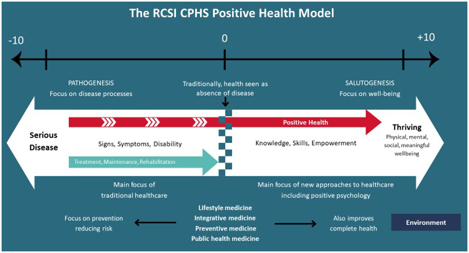 Positive health model proposed by the RCSI Centre for Positive Health Sciences, adapted with permission from O'Boyle et al. (2023), RCSI Centre for Positive Health Sciences.