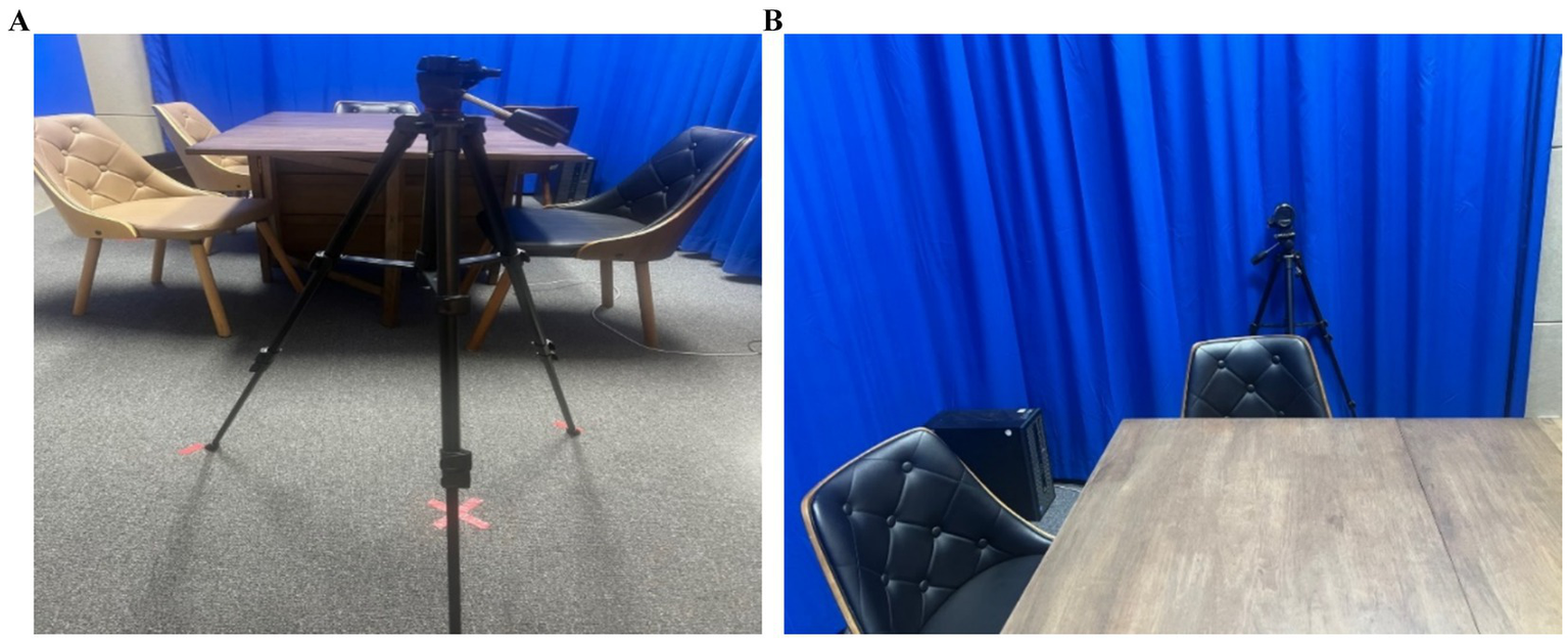 (A) (Left) and (B) (Right). Camera setting for consistent video recording process.