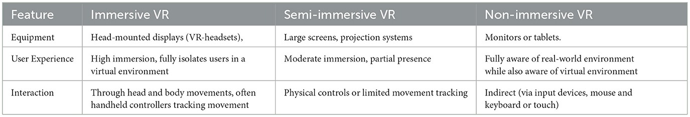 Table 1. Different types of virtual reality definitions according to immersion degree (based on Liu et al., 2023).