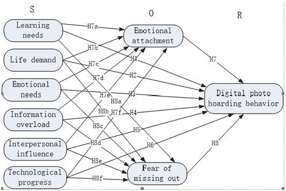 Emotional attachment has a significant impact on digital hoarding behavior (Luxon et al., 2019; Zhang and Liu, 2024b; Wu et al., 2021b). College students may develop emotional attachments to certain things due to their studies, life, and emotional experiences, and rely on technological support to engage in digital photo hoarding behavior. The emotional and personal meaning people attach to their digital photo collections is at the heart of the sentimental value of digital photo hoarding (Agarwal et al., 2024). Emotional attachment plays a mediating role in the impact of personal needs, personal habits, data characteristics, social influence, technical support, and data literacy on data hoarding behavior (Lu, 2023). Therefore, we proposed the following hypothesis: