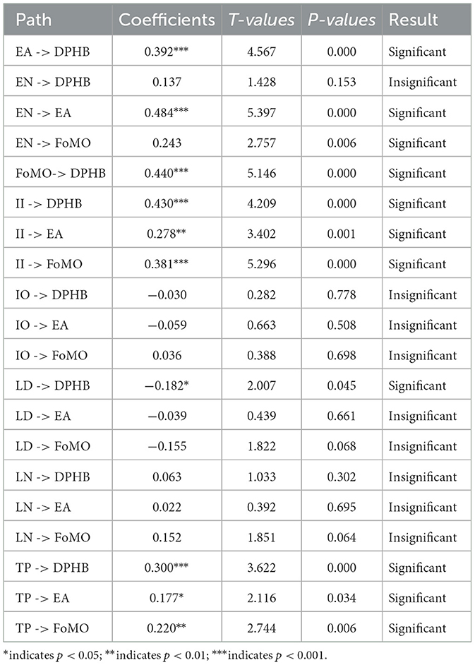With the Bootstrapping in SmartPLS 4.0, the hypothesis testing results shown in Tables 3–5 were obtained.