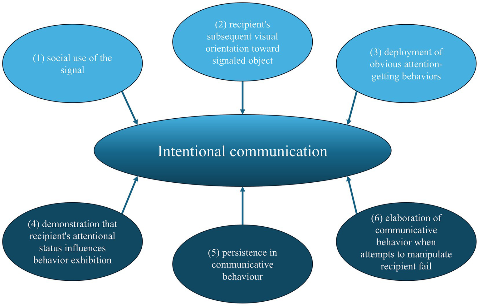 Criteria to declare a signal as a form of intentional communication as defined by Leavens et al. (2005).
