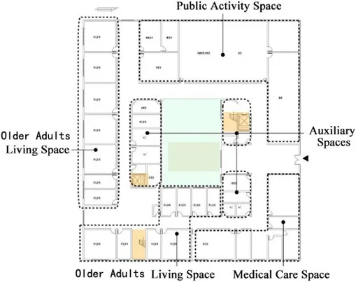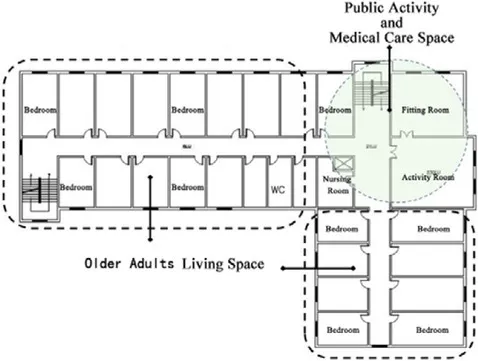 Studies of several typical physical environment space components in nursing home, for example: studies of the public space. The research methods include analyzing the types and design characteristics of architectural space based on the theories and classification methods of architectural typology, analyzing the spatial design features of nursing homes by using architectural space syntax, and conducting post-use evaluation of buildings by applying the methods of environmental behavior science (Zhong et al., 2017; Lu, 2005; Hu, 2004; Xia, 2013).