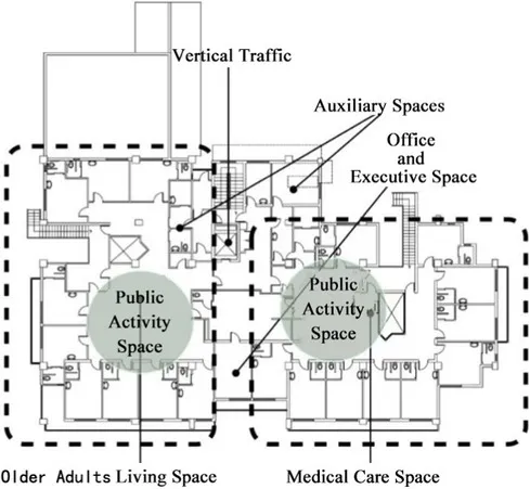 The design of living units and small-scale clusters in specialized nursing home should be tailored to the physical health needs of older adults. The architectural space of the nursing home adopts a unit clustered architectural spatial layout type, while the interaction spaces are distributed. This type of building is more conducive to older adults carrying out social activities. It is essential to create a communal communication space within the living unit that embodies an open, family-like atmosphere, serving as the primary venue for both residence and interaction among older adults. Furthermore, urban life functions should be integrated between living units to enhance social communication opportunities for this demographic.
