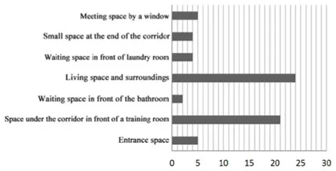 All older adults wanted interaction space in the corridor. In addition, the older adults also showed the desire to have interaction space designed in non clustered nursing units.