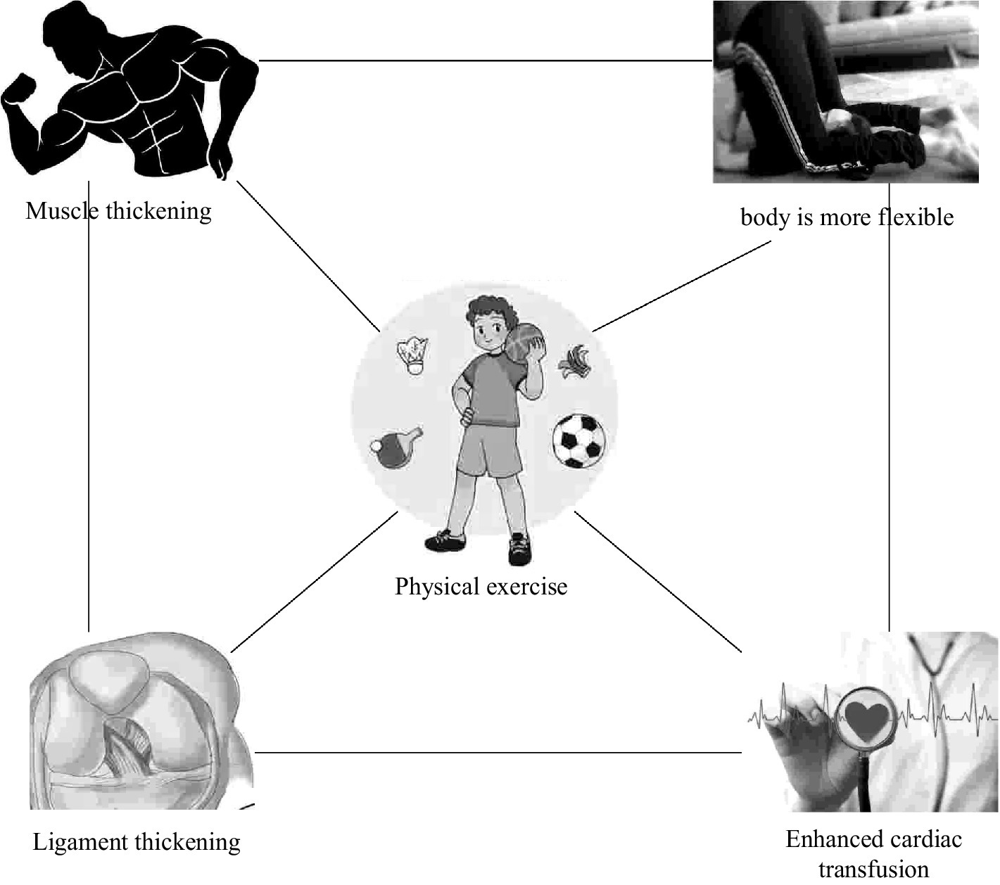 Physical exercise has many benefits to the body. People who do physical exercise for a long time can not only see changes in their appearance, but also optimize their internal organs (Tomazoni et al., 2017). The benefits of long-term exercise on aspects of the human body can be shown in Figure 2.