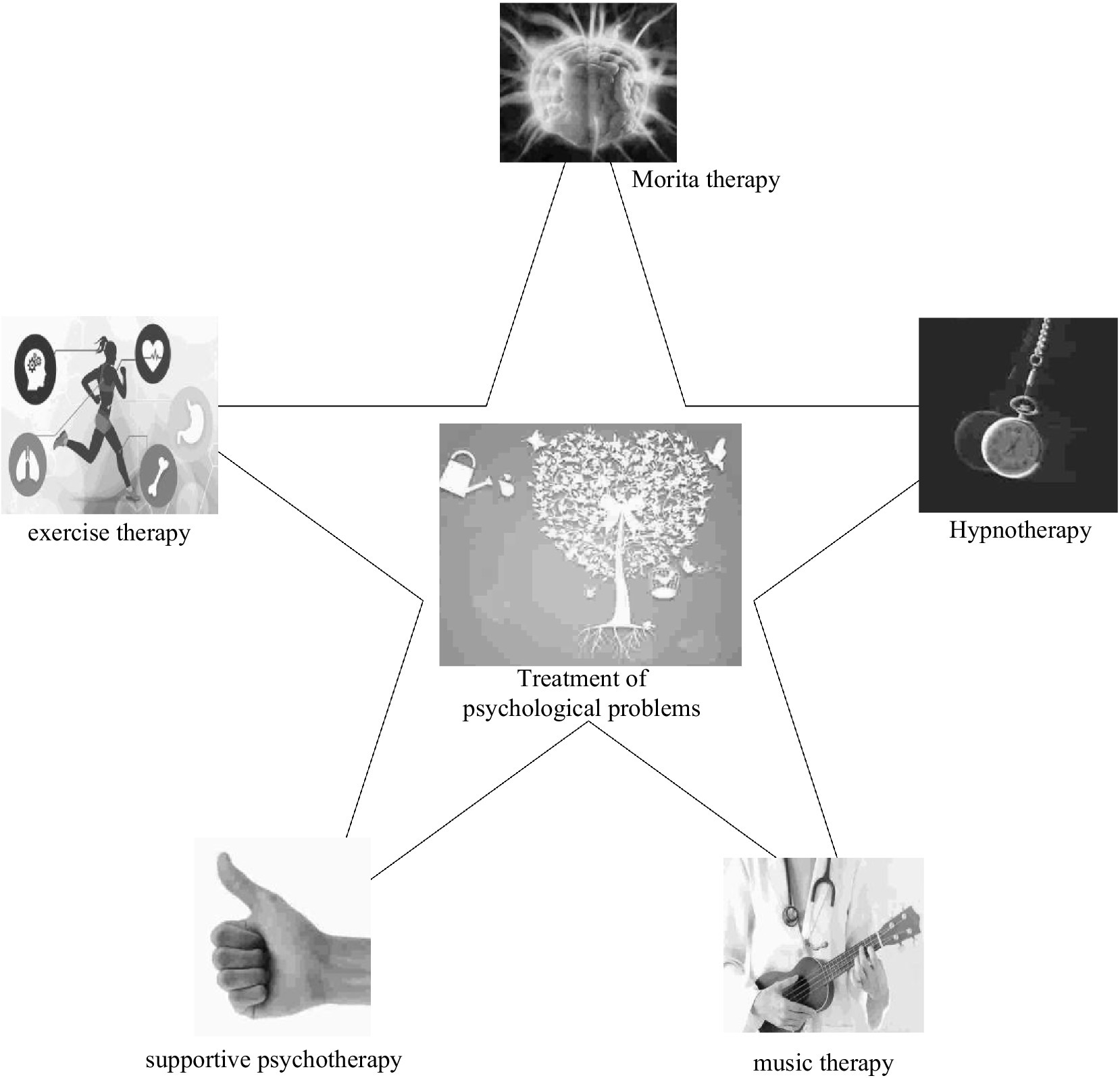 In addition, there are many treatments for psychological problems, as shown in Figure 6. These can be mainly divided into the following three categories: 1. Psychiatric treatment: including supportive psychotherapy and cognitive behavioral therapy. 2. Medication: using medications such as antidepressants and antianxiety drugs. 3. Behavioral therapy: including exercise therapy and relaxation training. The physical exercise method studied in this article belongs to the category of exercise therapy within behavioral therapy.
