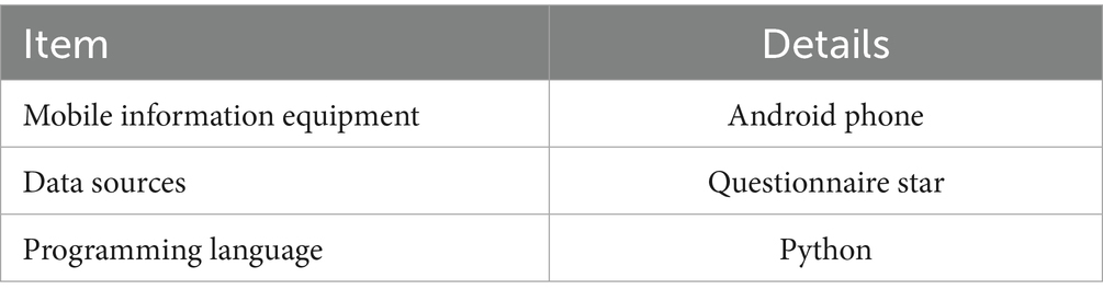 In this study, “positive items” refer to items with an SCL-90 score of 2 or higher, indicating the presence of some psychological symptoms; “negative items” refer to items with a score of 1 or lower, indicating the absence of significant symptoms. A decrease in the number of positive items indicates a decrease in symptom frequency, while an increase in the number of negative items indicates improved psychological well-being. To ensure consistent understanding, we provided standardized instructions to participants before the assessment, clarifying the scoring scale (1 = none, 2 = mild, 3 = moderate, 4 = severe, 5 = severe). We also randomized the items, ensured anonymity, and emphasized the importance of truthful responses to minimize social desirability bias. After physical exercise, the number of positive items decreased from 35.2 ± 6.1 to 15.3 ± 4.8 (t = 38.64, p < 0.001), the number of negative items increased from 54.8 ± 7.2 to 74.7 ± 5.3 (t = −29.17, p < 0.001), and the General Symptom Index (GSI) significantly decreased (1.82 ± 0.41 vs. 0.79 ± 0.33), confirming an overall improvement in mental health. The mobile information device and data survey methods used in this article are shown in Table 2.