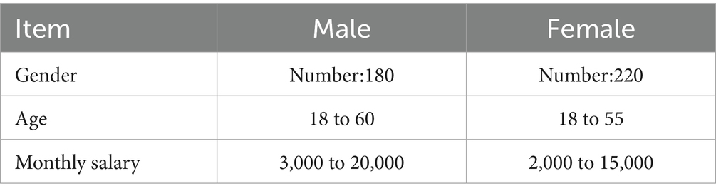 For the valid questionnaire part, this paper summarizes gender, age and monthly salary, as shown in Table 3.