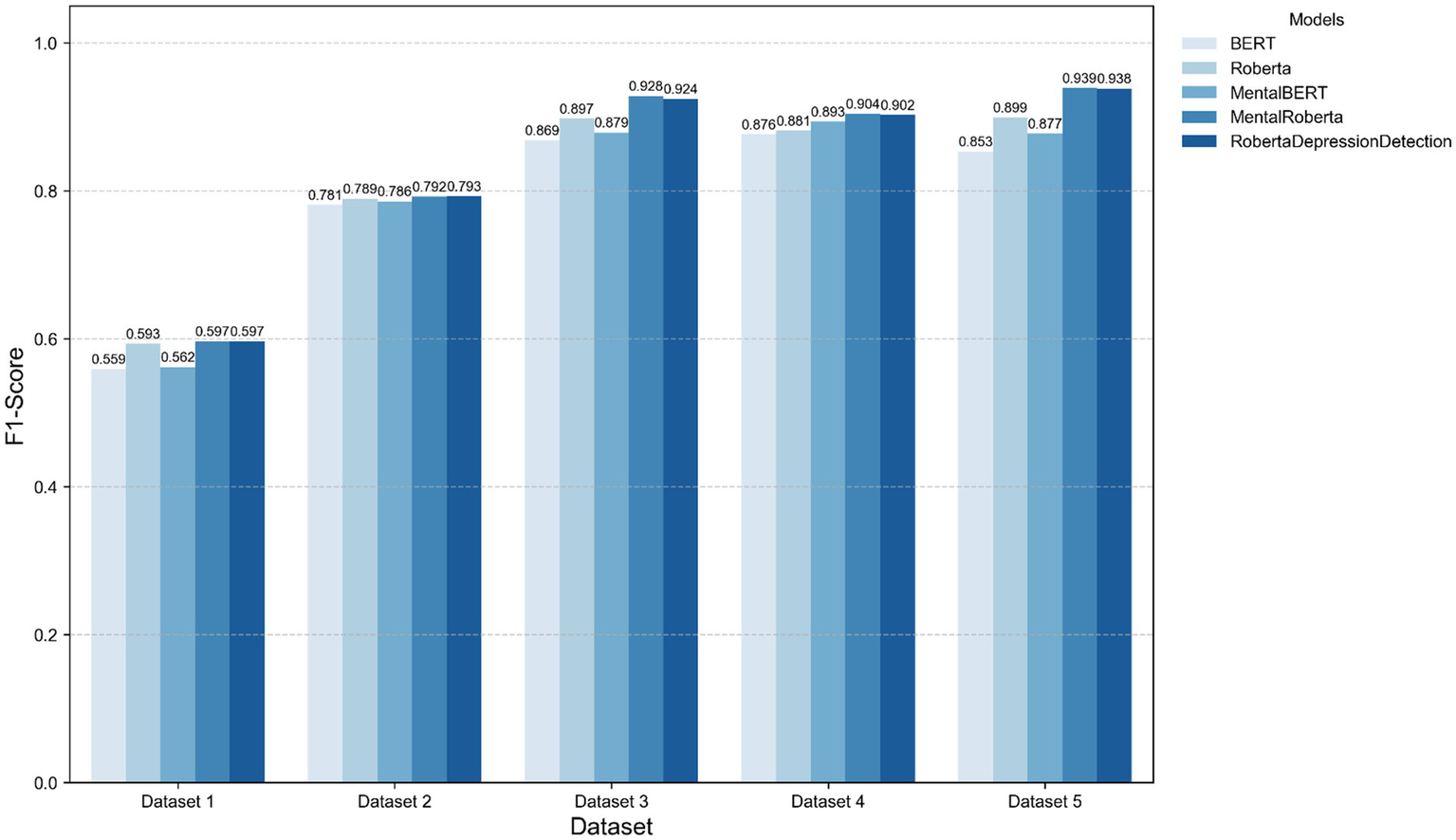 A higher F1-score reflects a better trade-off between Precision and Recall, making it a valuable metric for evaluating depression detection models.