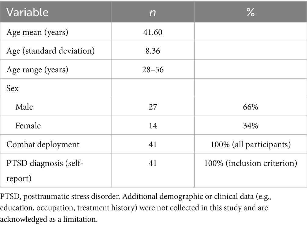 An additional limitation of this study is the lack of detailed socio-demographic and clinical data. While sex, age, and deployment history were recorded, variables such as education level, occupation status, disability rating, substance use, and current PTSD treatment or medication use were not collected. This limits our ability to interpret differential treatment responses or generalize findings across veteran subgroups. Future studies should incorporate comprehensive baseline demographic and clinical profiling to enhance subgroup analysis and external validity.