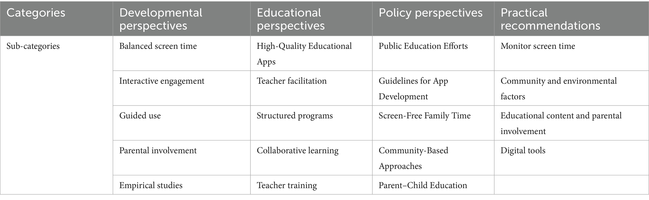 RQ4. What recommendations have been identified in the literature regarding touchscreen use among young children, from developmental, educational, and policy perspectives?
