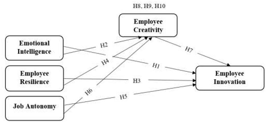 Results: The findings confirm that employee resilience, emotional intelligence, and job autonomy significantly contribute to employee innovation. Additionally, mediation analysis reveals that both resilience and job autonomy foster innovation indirectly through employee creativity, whereas emotional intelligence does not exert a significant indirect effect.