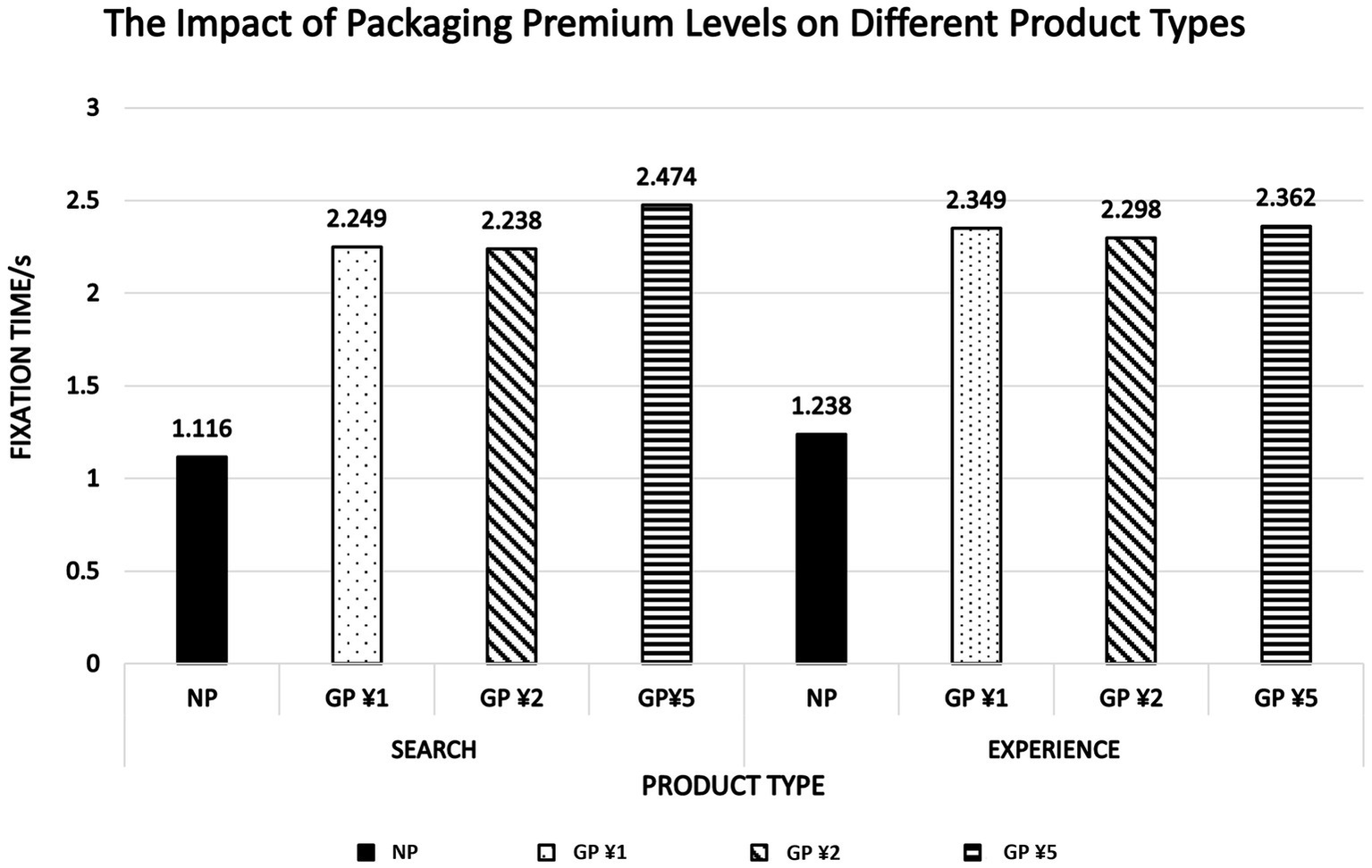 Some studies have pointed out that price is one of the key factors influencing consumers’ willingness to purchase green products (Hao et al., 2019). Consumers’ willingness to pay for green products is negatively correlated with the premium (Zhao et al., 2015), especially for price-sensitive consumer groups (Teoh et al., 2022). In China, although consumers are willing to consume green products, most consumers have not realized actual purchasing behavior for various reasons (Zhang and Li, 2017), product price is one of the major influencing factors (Li et al., 2016). Research based on data collected from field surveys indicates that most consumers are willing to pay a premium for green products, but their willingness to pay varies with different premium levels (Sheng et al., 2018), Another recent study suggests that consumers’ environmental awareness also plays a crucial role in their purchasing decisions (De Canio, 2023). A survey study targeting Chinese consumers found that approximately 70% of residents in first-tier cities, where environmental awareness tends to be higher, are willing to pay ¥2.46 for GEP (Lin and Wang, 2023). Another study, which collected consumer data from randomly selected second- and third-tier cities through field surveys, found that consumers generally have a willingness to use and pay for GEP with additional ¥2.18 (Jia et al., 2025). Although consumers in these lower-tier cities are also inclined to choose GEP, differences in environmental awareness can be attributed to one of the factors of their lower willingness to pay when compared to their counterparts in first-tier cities. In e-commerce, where consumers encounter various options and prices, environmental awareness becomes a pivotal factor in balancing cost and sustainability in their decisions. Previous research statistic data on GEP premiums primarily relies on questionnaire surveys, with limited research on visual attention. Survey data tends to be subjective and lacks the real-time capture of consumers’ decision-making process, which can affect the objectivity and accuracy of the results. Eye-tracking technology can help address these shortcomings to some extent.