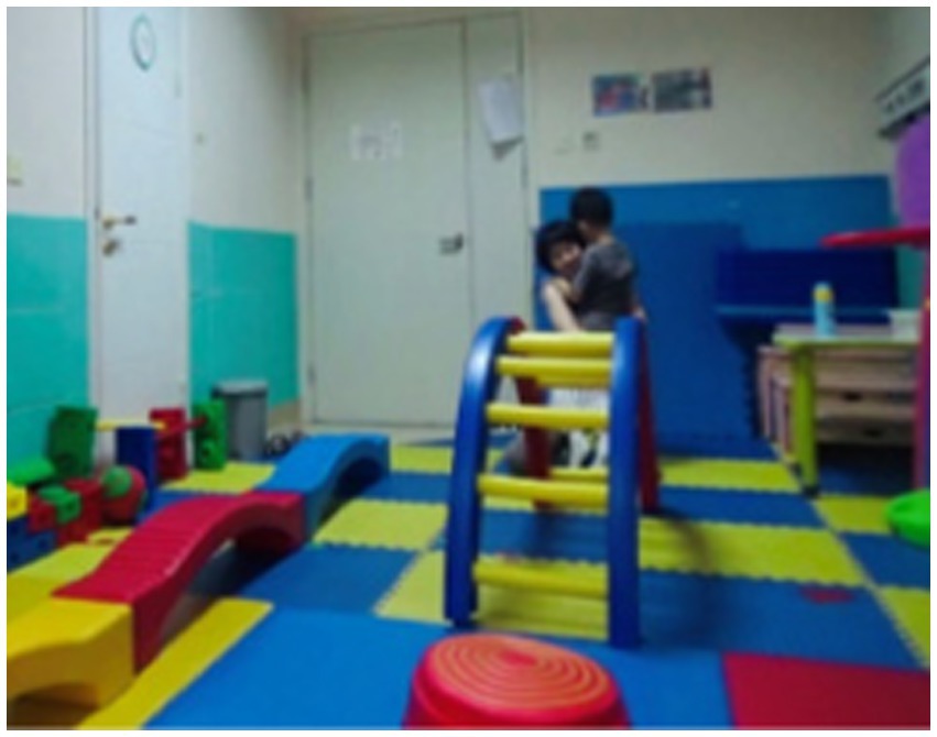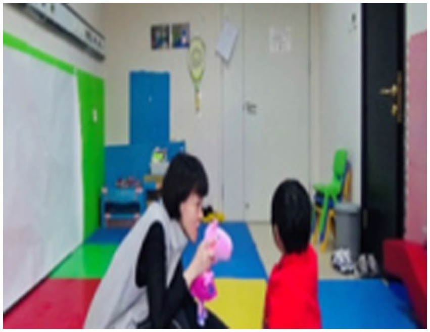 In addition, parents also commented on the intimate and harmonious interactions between their children and therapist. Zhang said, “I am very... jealous! My child has never rushed toward me without hesitation and hugged me like this.” (see Figures 7, 8).