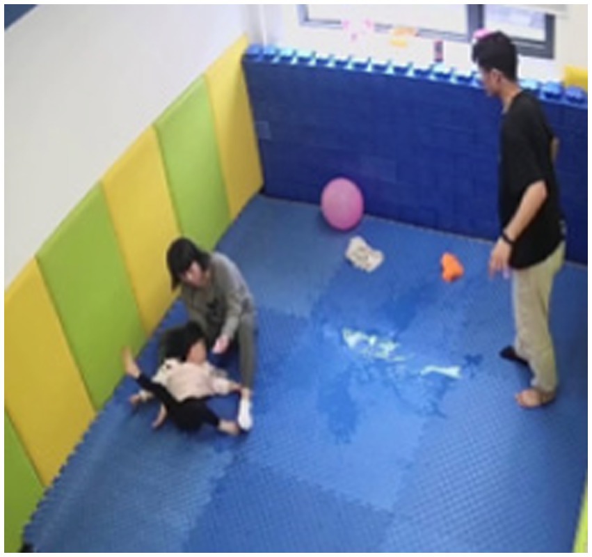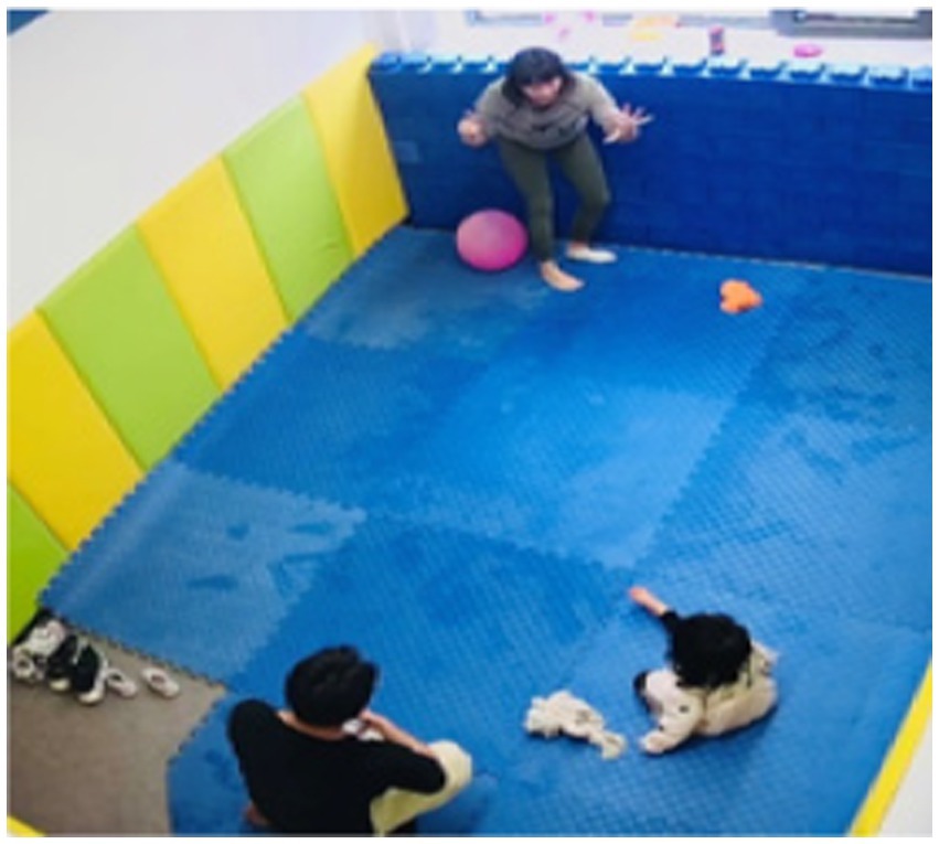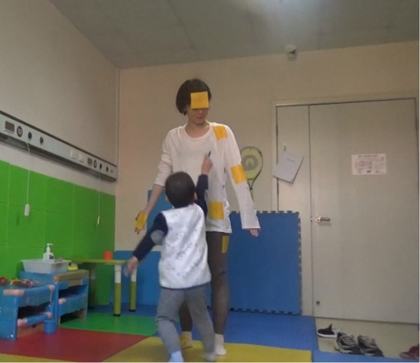 Figure 1. A child who has no interest at all in the therapist. The therapist tried to capture the child's interest by holding a Peppa Pig toy, which the child likes, but no matter what the therapist said or did, the child always looked elsewhere, seemingly uninterested.