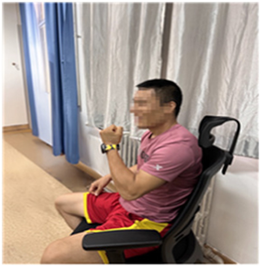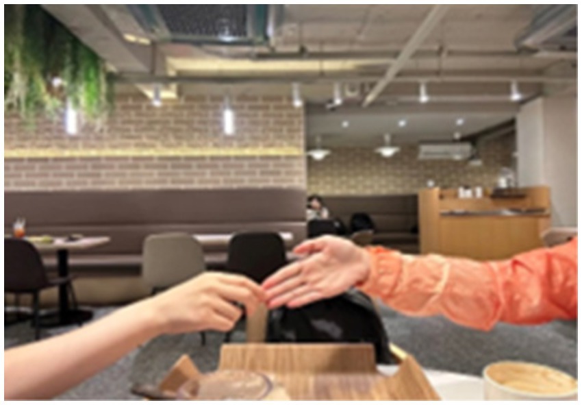 In DMT, movement is considered as a powerful communication medium that conveys information far beyond the scope of words alone (Levy, 1992). Hence, movement is also an important type of data in qualitative studies. Therefore, data collection should not be limited to verbal statements, and obtaining participants’ movement data was equally important. The researcher posed the following guiding question to the participating parents: “If you were to respond to your child in the video with body movements, what movement would you use for expression?” Among the five participants, four were actively willing to participate in movement expression, while one was not. Responses of the four participants were all spontaneously generated and based on kinesthetic empathy, rather than predetermined gestures or postures. Guided by the interviewer, they translated their emotional perceptions of the video content into non-verbal actions to establish a connection with their children. Among them, two parents crossed their arms and attempted to create a safe boundary for their children using their bodies as protective containers. One parent adopted a gesture of bent elbows and clenched fists, which intended to convey confidence in facing ASD and provide an anchor of strength for the child. Another parent used gentle, tentative fingertip touches, and clarified: “I want to get closer, but I am afraid of being rejected.”